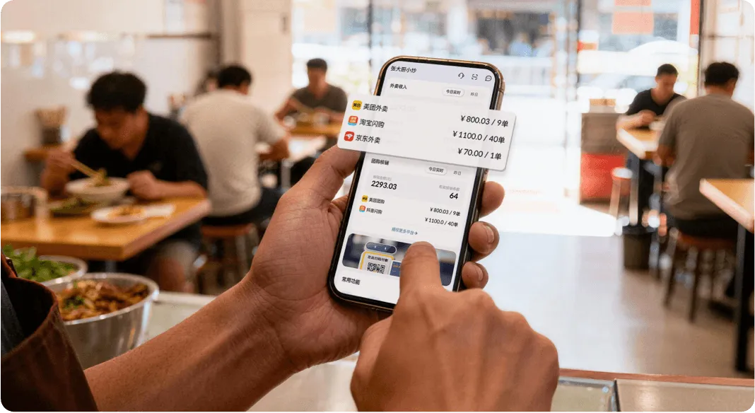 整合多平台外卖、到店数据,将各平台外卖订单、团购核销数据统一集中管理,商家无需频繁跳转多个后台管理生意。助力商家一站式完成在多个平台开店运营,提升曝光,简便生意。
